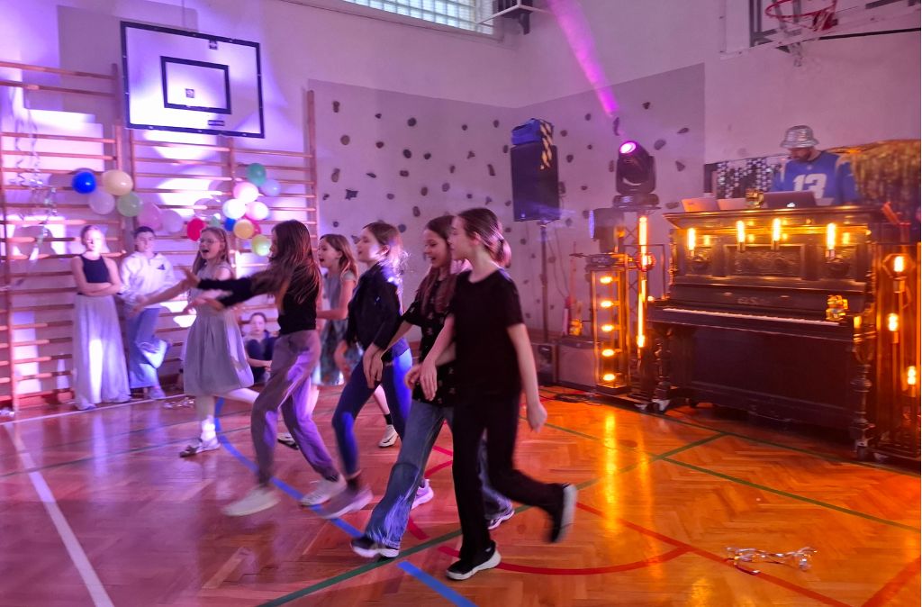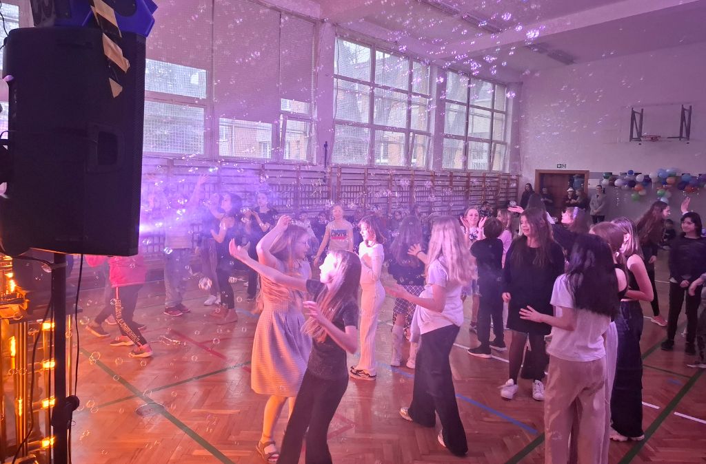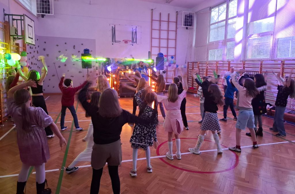Szkolna dyskoteka dla uczniów klas 4-8 była niezwykłym wydarzeniem, które na długo pozostanie w pamięci uczestników. Sala gimnastyczna zamieniła się w tętniący życiem parkiet taneczny, pełen świateł, muzyki i radosnych uśmiechów. DJ zadbał o różnorodność muzyczną, serwując największe hity zarówno współczesne, jak i te nieco starsze, co sprawiło, że każdy znalazł coś dla siebie.