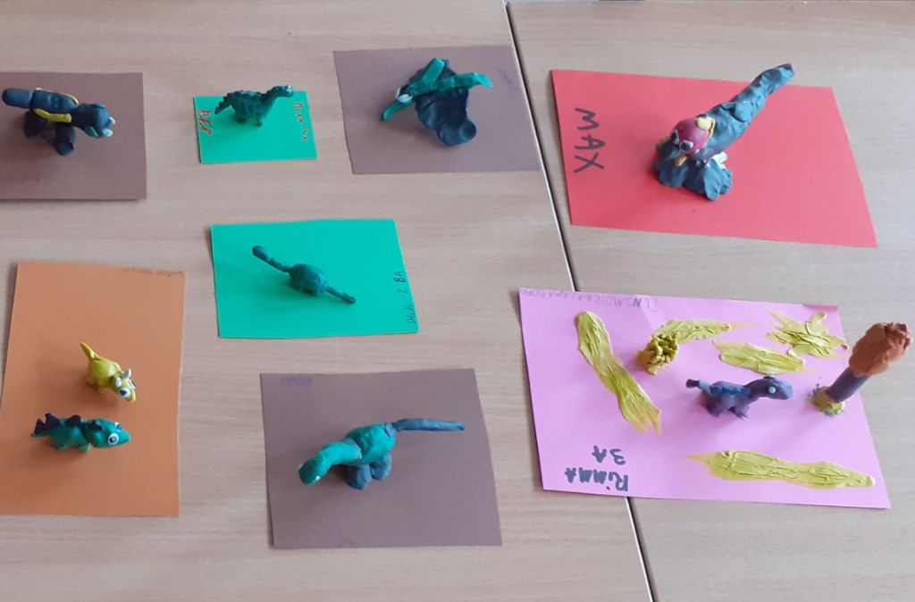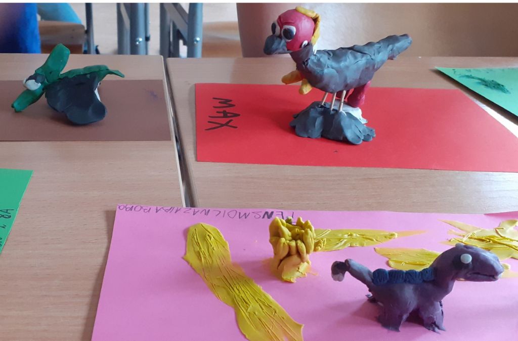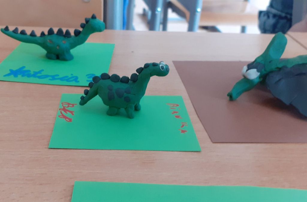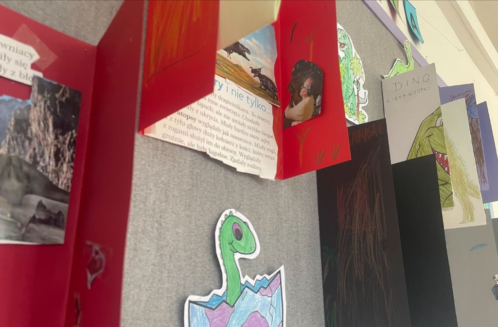 W świetlicy szkolnej odbył się fascynujący cykl zajęć poświęcony dinozaurom. Dzieci miały okazję zgłębić tajemnice prehistorycznego świata, co wzbudziło w nich ogromną ciekawość i kreatywność. Podczas zajęć dzieci wykonały lapbooki, które pełne są kolorowych ilustracji i ciekawostek o dinozaurach. Każdy lapbook to osobista encyklopedia wiedzy o prehistorycznych gigantach. Nie zabrakło także praktycznych wyzwań. Z plasteliny powstały niesamowite modele dinozaurów, które dumnie prezentują się na wystawie.