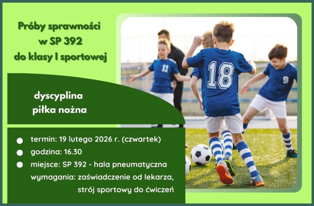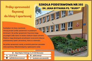 Kandydaci do klasy sportowej muszą przejść próby sprawności w podanych terminach. Do próby sprawności fizycznej mogą przystąpić tylko dzieci w bardzo dobrym stanie zdrowia. Rodzice mają obowiązek przedstawić orzeczenie lekarza podstawowej opieki zdrowotnej, które to stwierdza.