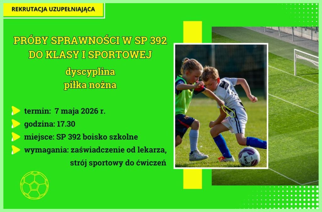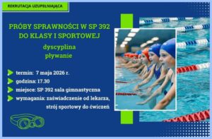 Kandydaci do klasy sportowej muszą przejść próby sprawności w podanym terminie. Do próby sprawności fizycznej mogą przystąpić tylko dzieci w bardzo dobrym stanie zdrowia. Rodzice mają obowiązek przedstawić orzeczenie lekarza podstawowej opieki zdrowotnej, które to stwierdza.