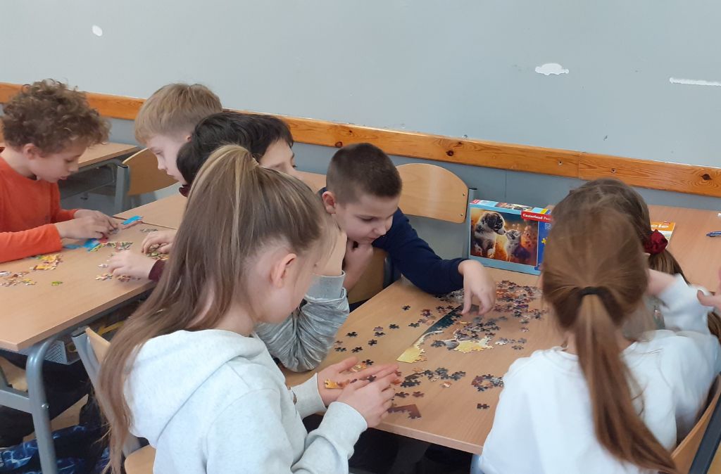 Uczniowie uczęszczający do świetlicy szkolnej zmierzyli się z niełatwym zadaniem. Podczas Dnia Puzzli wykazali się niezwykłą cierpliwością i umiejętnością współpracy przy układaniu obrazów kryjących się w setkach małych kawałków. Był to miło spędzony czas, który dostarczył wiele radości i satysfakcji. Gratulacje dla wszystkich uczestników za ich wytrwałość i zaangażowanie!